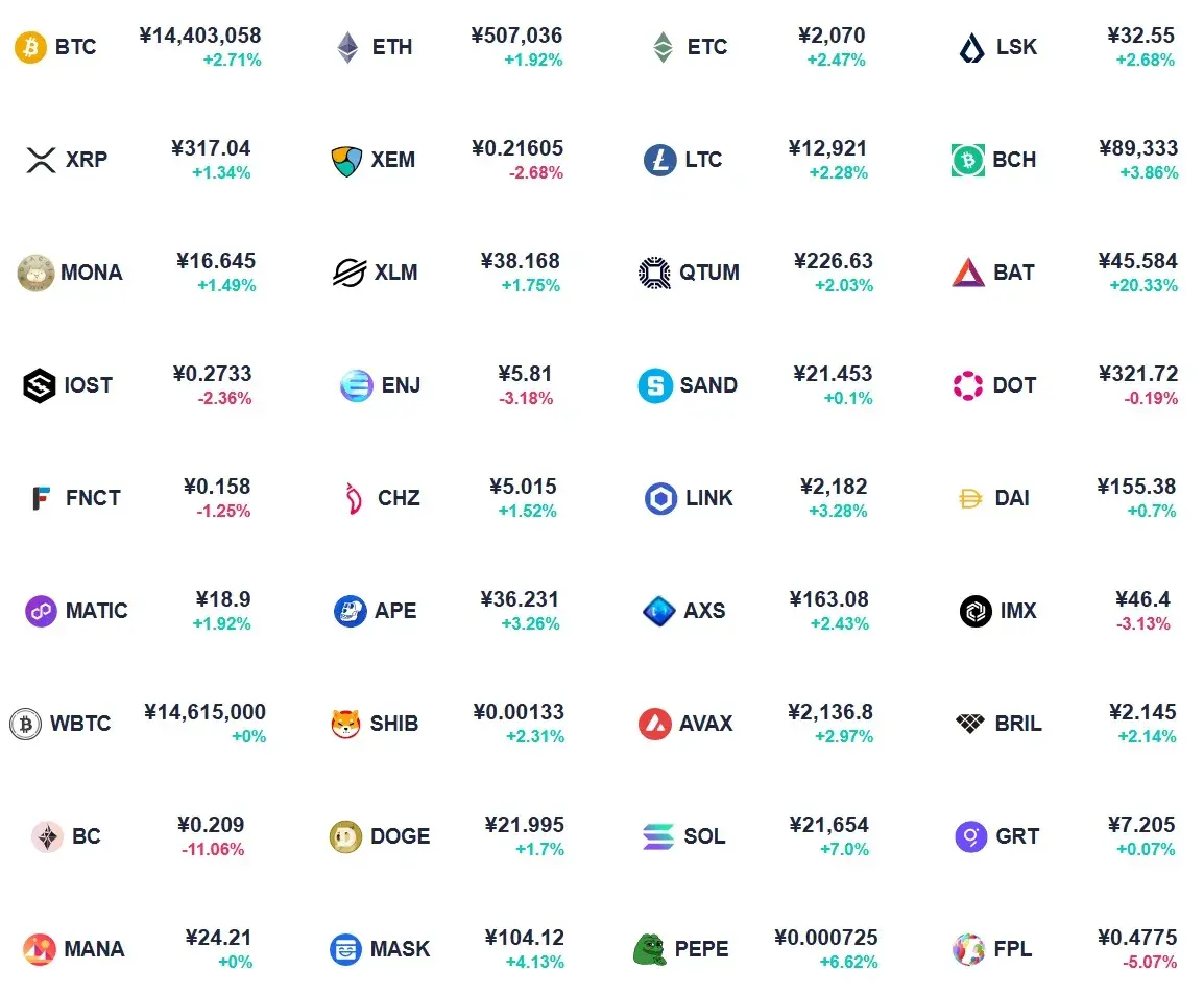 取り扱い銘柄は全39種類。すべての仮想通貨を1円から取引できます。