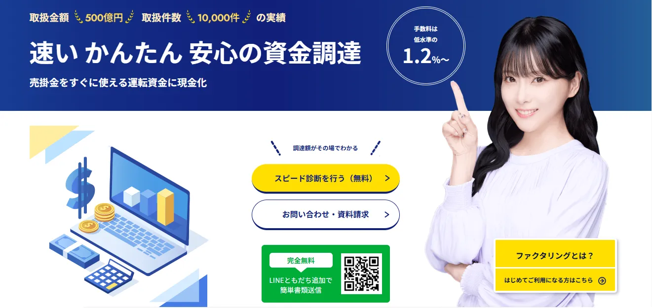 公式サイトには無料スピード診断フォームが用意されており、希望金額や売掛金合計額、種別(法人・個人事業主)などの基本情報を入力するだけで簡単に申し込めます。