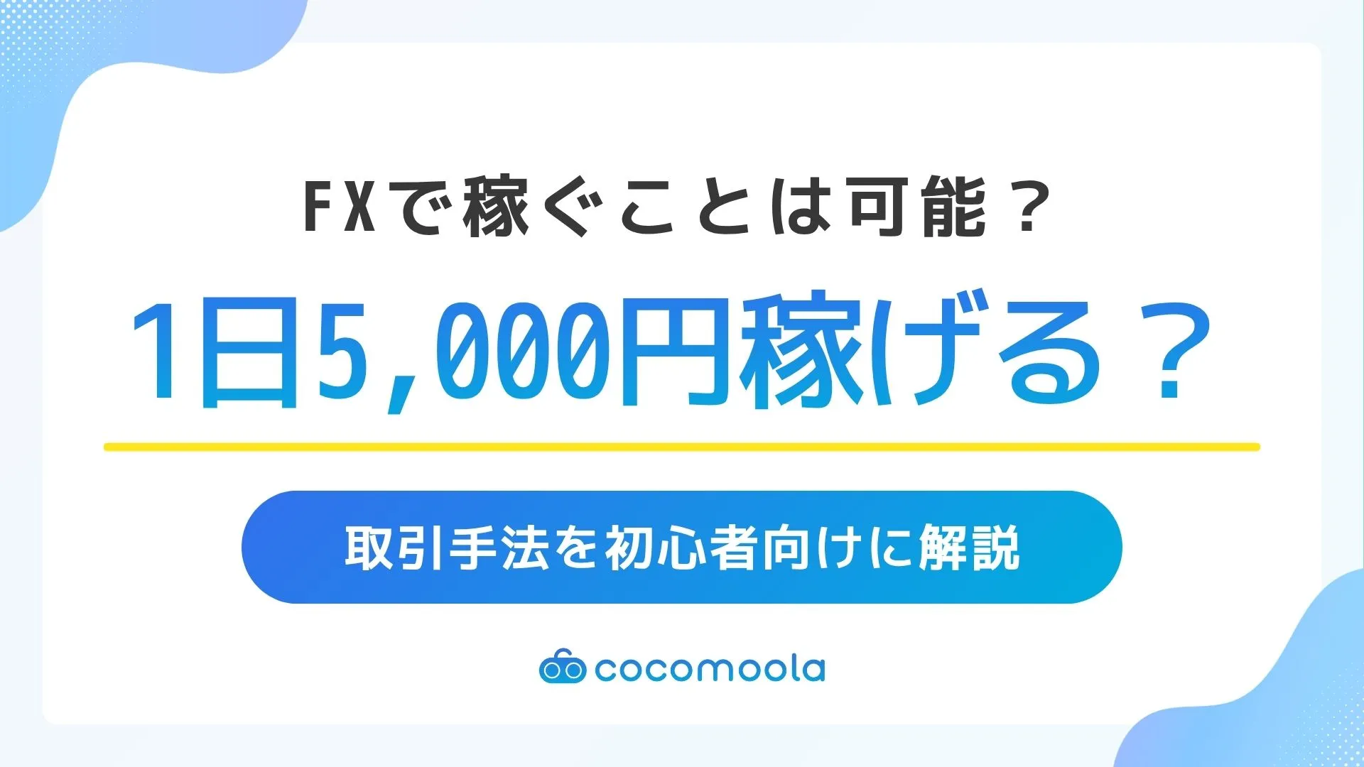 FXで1日5,000円稼ぐことは本当に可能なのか?本記事では、初心者でも無理なく1日5,000円を目指すための現実的な考え方や、スキャルピング・デイトレードなどの取引手法、必要資金の目安をわかりやすく解説します。さらに、実際に利用しやすいおすすめのFX口座や、失敗しやすいポイント、安定して利益を積み上げるコツも紹介。FX初心者が「まず何から始めればいいのか」を理解できる内容です。