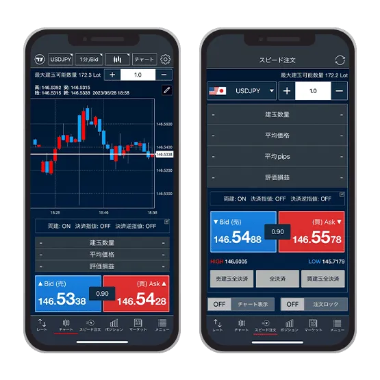 外出先でもスムーズに取引できるように設計されたのが、スマホ専用の「LIGHT FXアプリ」です。発注・チャート分析・資金管理まで、すべてスマホ1台で完結できます。