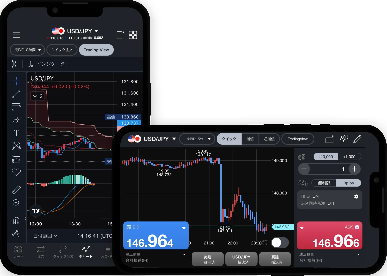 さらに、どちらのツールでも人気の高機能チャート「TradingView」が使えるのが大きな魅力です。あなたのスタイルに合わせて、快適に取引できる環境が整っています。