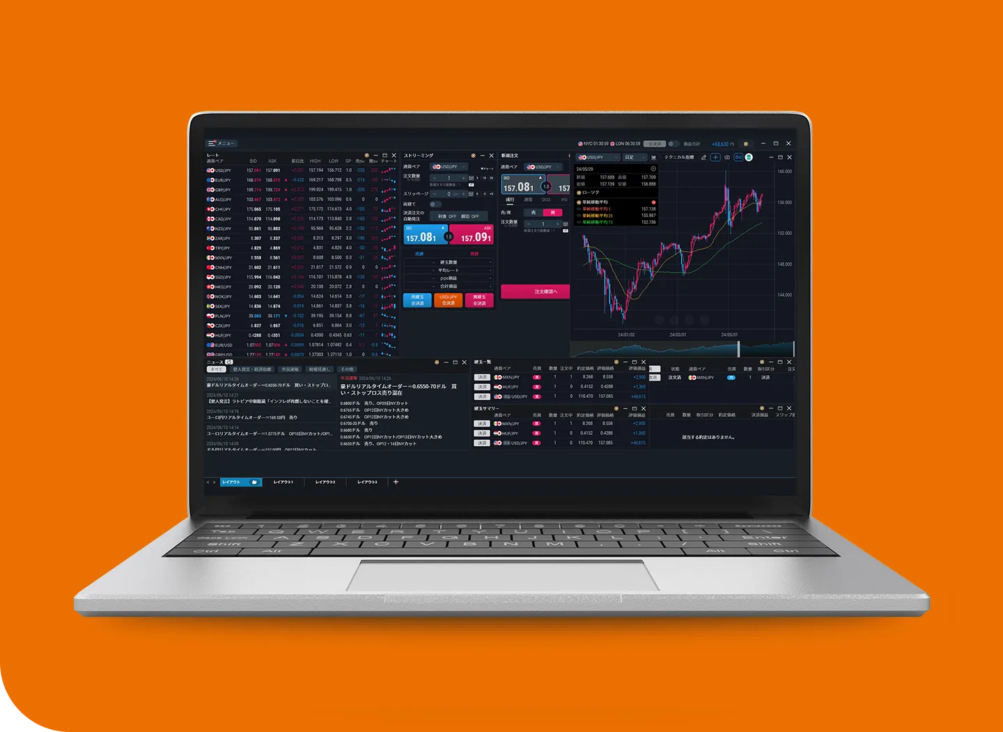 PC・スマホどちらのチャートも見やすく、テクニカル指標も充実しています。 ストリーミング注文など多彩な発注方法にも対応しており、取引がスムーズでした。