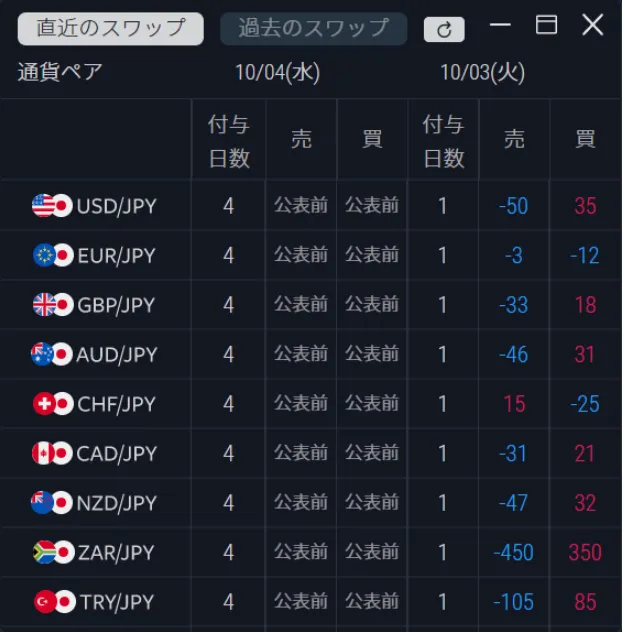 スワップポイントは高水準の通貨ペアもありますが、公式サイトで一覧が事前に見られないため、実際に口座を開設して確認する必要がありました。 事前に比較したい人にはやや不便に感じます。