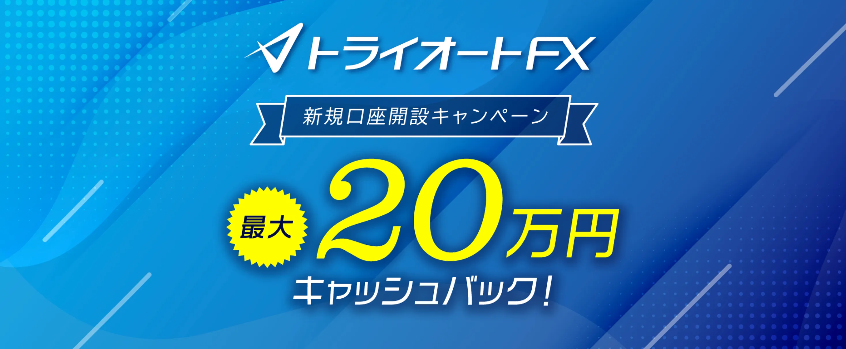 トライオートFXは、「新規口座開設+取引」で最大20万円キャッシュバックされるお得なキャンペーンを開催しています。