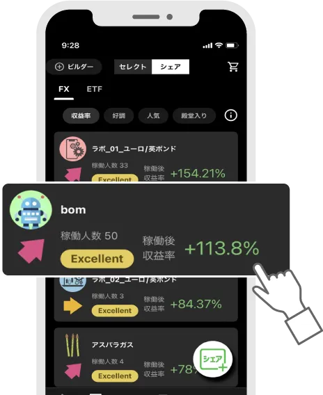 PCとスマートフォンに対応したアプリを通じて、FXの自動売買をシンプルな操作で始めることができます。