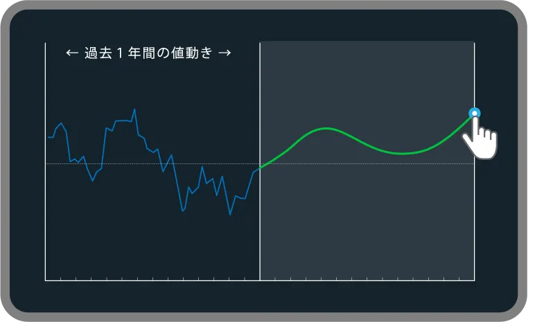 今後1年間の相場予測を立ててチャート上に一本の線を描くだけで、その値動きに合わせた売買戦略とルール設定を自動で提案してくれます。