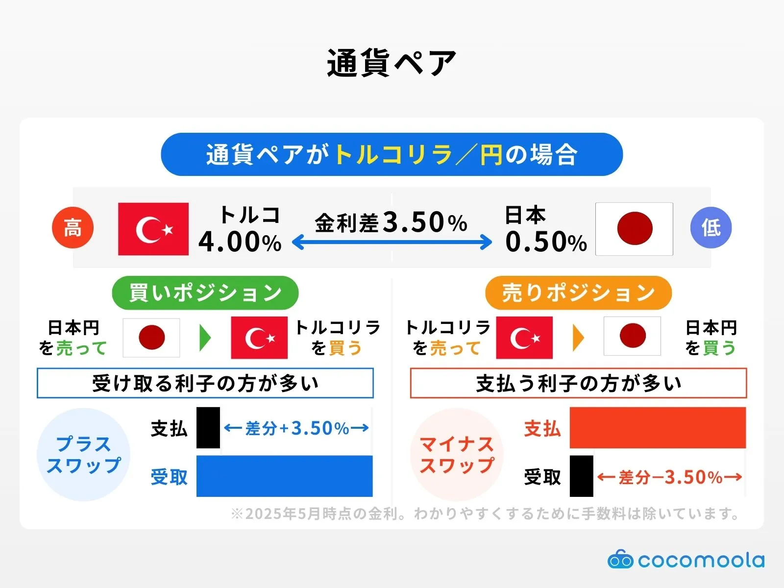 そこで本記事では、スワップポイントの仕組みやメリット・デメリットなどを詳しく解説します。さらに、米ドル/円やトルコリラ/円を始めとする人気の通貨ペアにおける各FX会社の利益額も徹底比較。