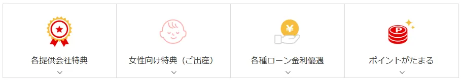 女性向け特典 | 出産後1年間の金利年0.2%引き下げ | 女性契約者が対象・条件あり |