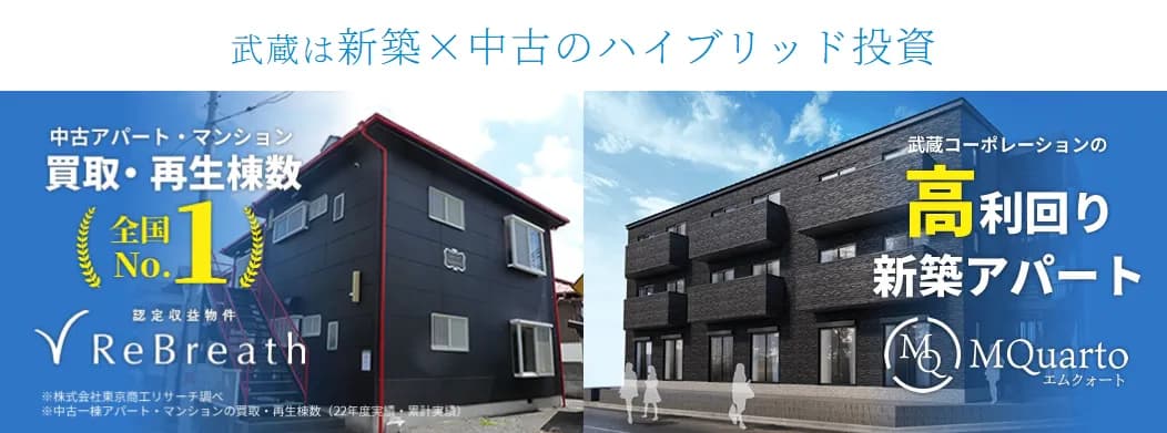 武蔵コーポレーションは、不動産投資に特化した資産運用会社です。収益用アパートやマンションなどの収益不動産の売買・賃貸管理・再生リノベーションを通じて、資産形成や資産保全のサポートを行っています。