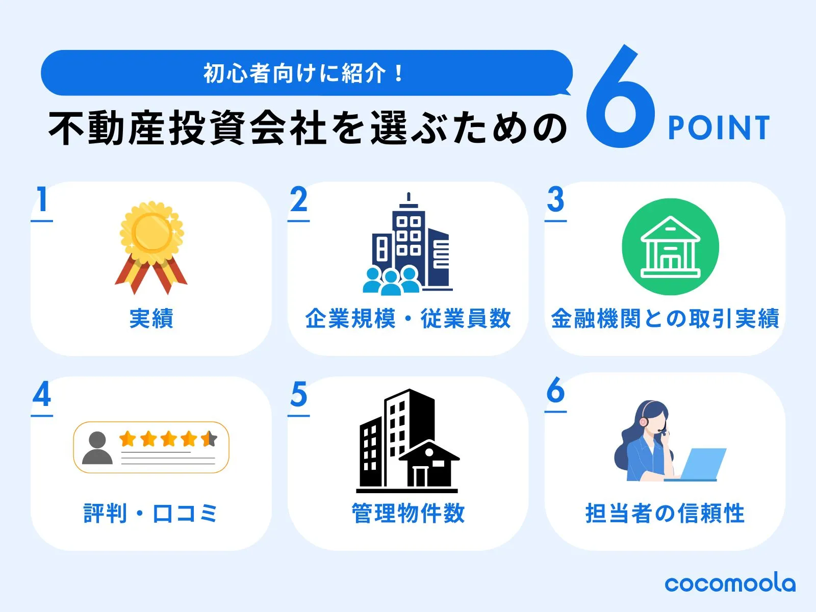 物件の質・収益性、サポート体制、管理会社の質、実績・信頼性、融資サポートの強さ、リスク説明の丁寧さなど、初心者が知っておくべき項目を詳しく解説しています。