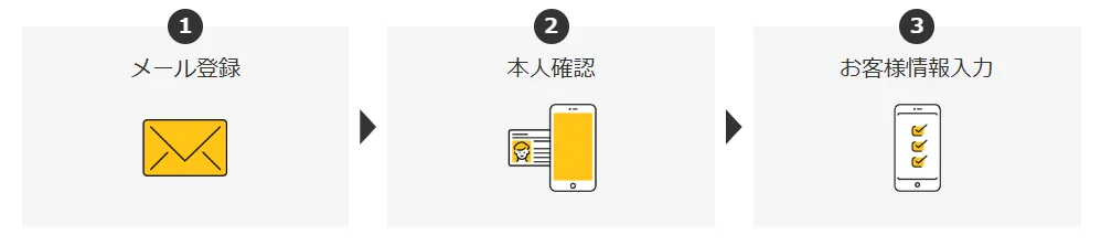 マネックス証券の口座開設はオンラインの場合、「最短3分・3ステップ」で申込が完了します。