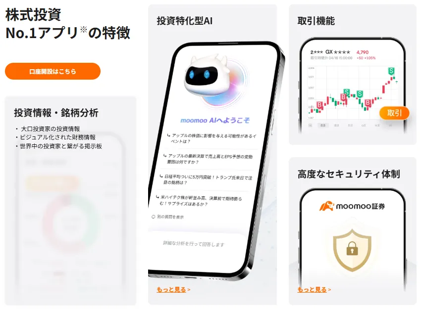 2022年に日本市場へ参入し、オリジナルの取引・分析アプリ「moomoo」を通じて、日本株・米国株・ETF・投資信託などを扱っています。